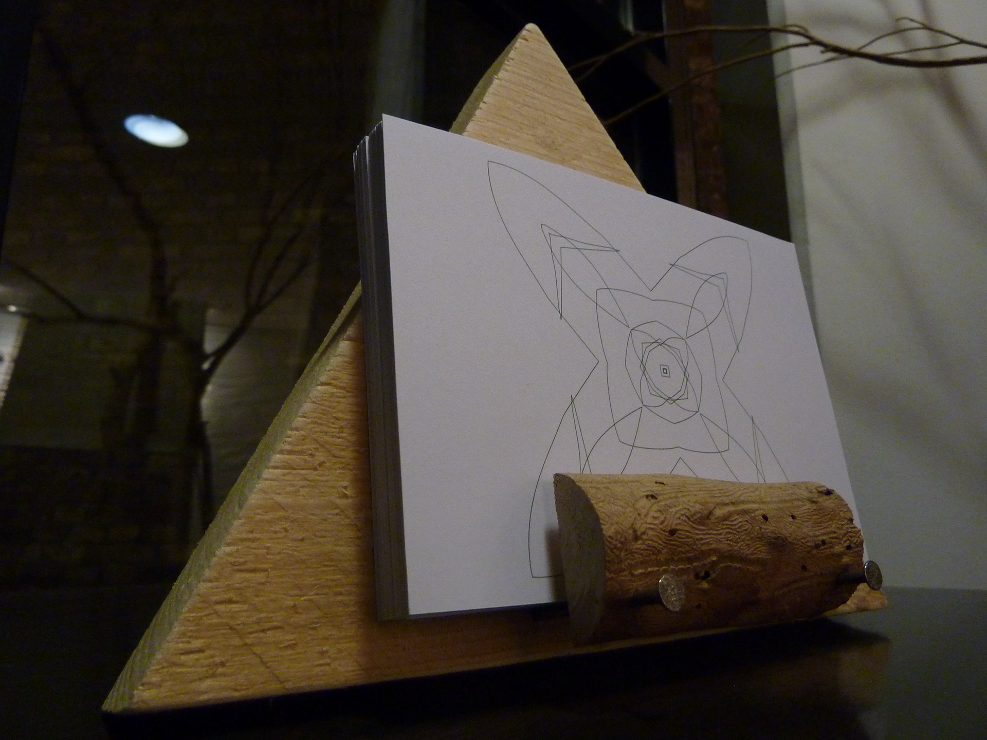 This piece was inspired by the Shri Yantra Mandala and made for an installation in De Toonzaal, Den Bosch. You can view it their in the special birdhouse installation built by Eric Langendoen.